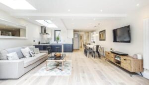 The Bi-folding and Flat glazed skylights, all supplied and fitted by Clapham construction service, maintain the connection to the natural light and the garden. We love projects that are simple in terms of the application process and with the new relaxation measure on householder development works introduced by the government since September 2020, we hope projects like this will become even easier to obtain as permitted development rights begin to expand.