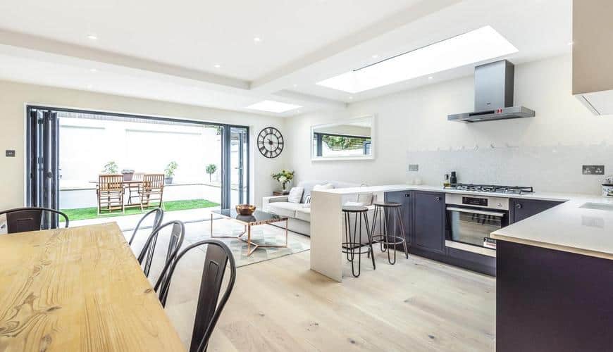 The Bi-folding and Flat glazed skylights, all supplied and fitted by Clapham construction service, maintain the connection to the natural light and the garden. We love projects that are simple in terms of the application process and with the new relaxation measure on householder development works introduced by the government since September 2020, we hope projects like this will become even easier to obtain as permitted development rights begin to expand.